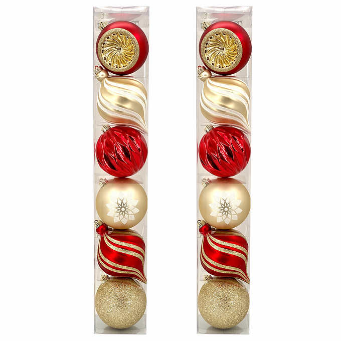 Shatter Resistant Ornaments Red/Gold, Set of 12 OVERSIZED 6" Ornaments