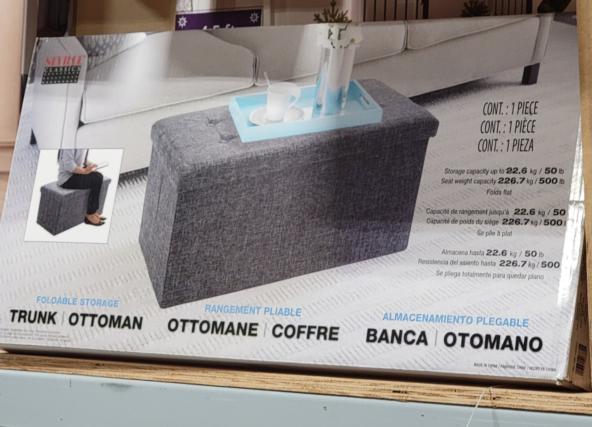 • The Seville Classics Foldable Storage Bench folds flat when not in use and can serve as a coffee table, additional seating, or as storage when needed.